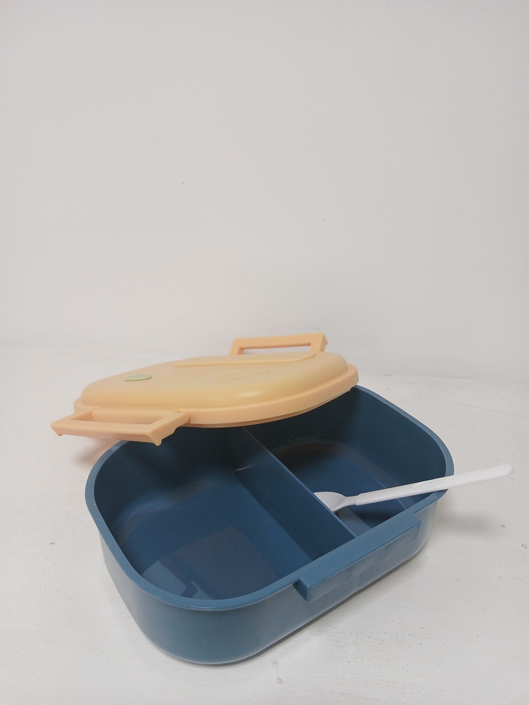 Lonchera plástica de 2 divisiones y una cucharita 20 cm * 13 cm y 7 cm de altura El color puede variar
